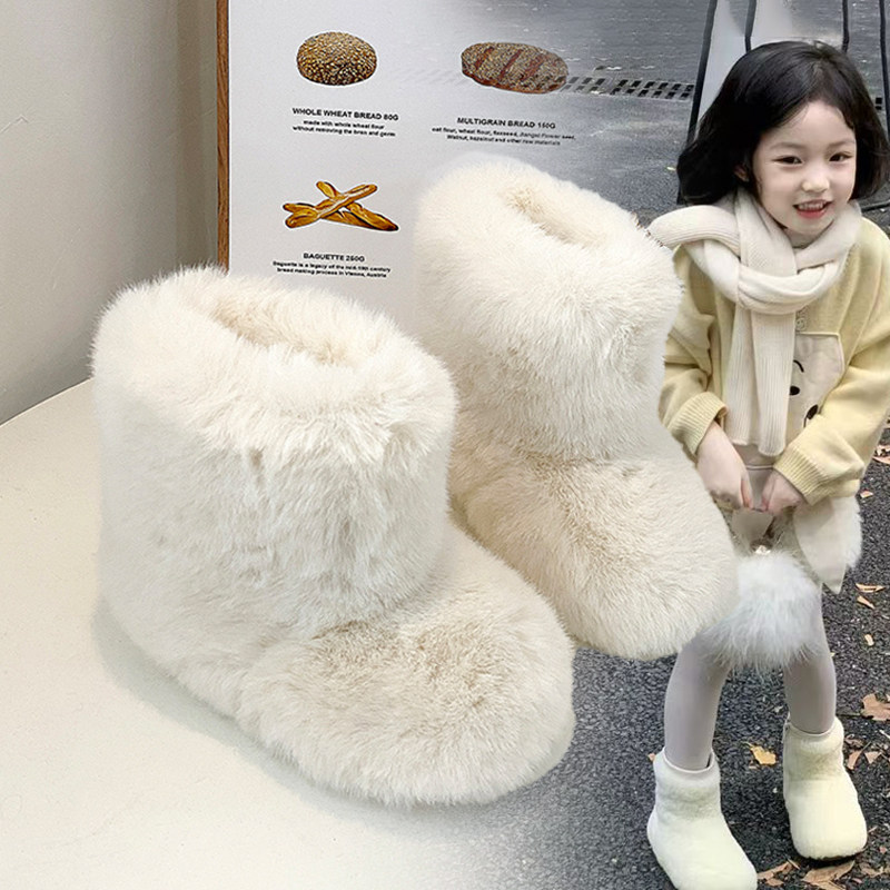 女童加厚仿兔毛毛绒靴冬季新款儿童保暖雪地靴韩版中筒纯色大棉靴
