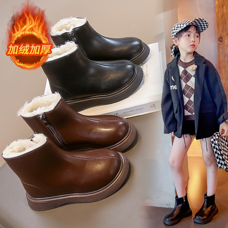 女童大棉保暖马丁靴2025冬季新款女孩韩版皮靴儿童短靴简约宝宝靴