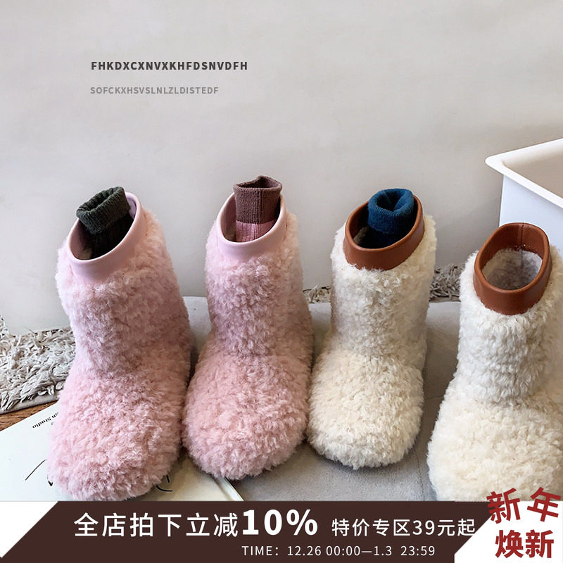 女童加厚仿兔毛毛靴冬季新款儿童保暖雪地靴韩版宝宝毛毛鞋大棉靴