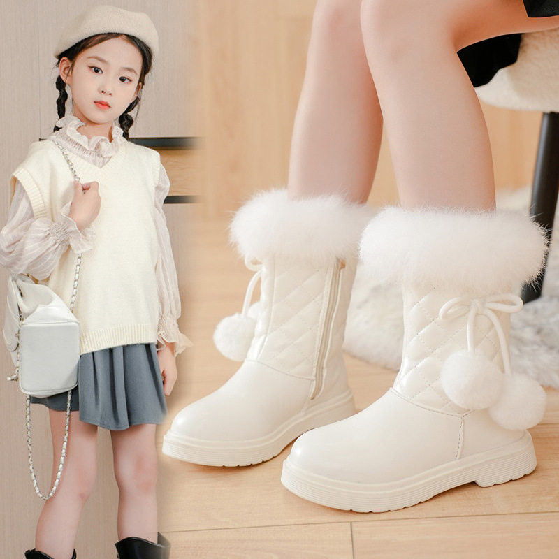 舞玛女童鞋子儿童雪地靴2025新款冬季加绒小女孩加厚保暖毛毛棉鞋