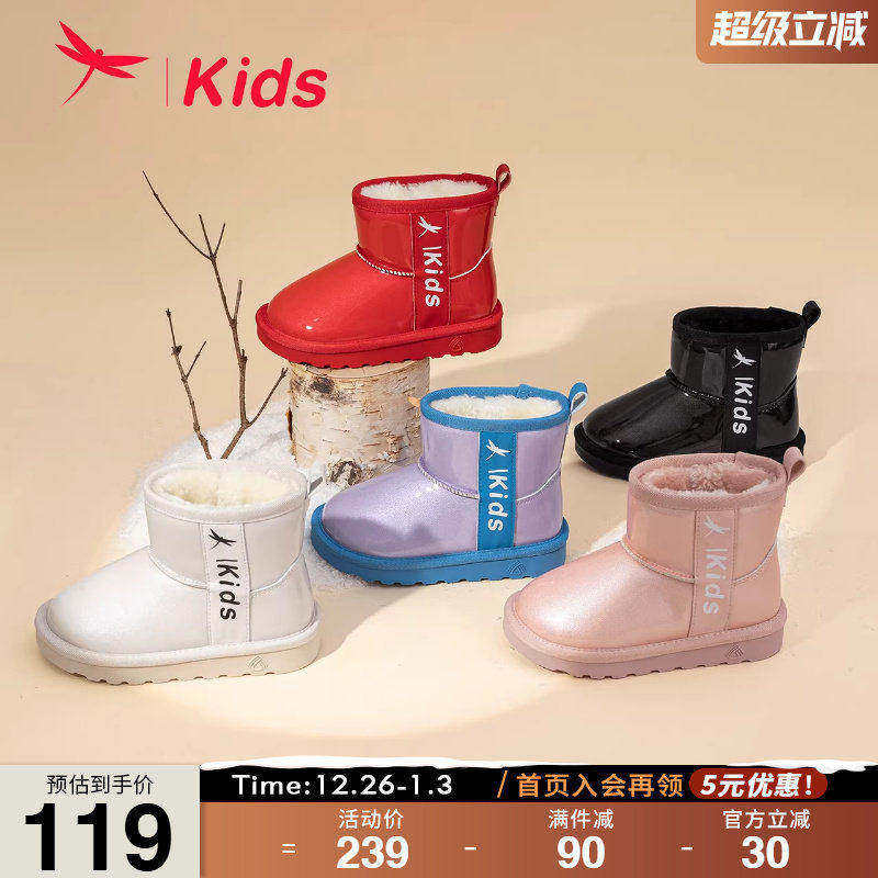 红蜻蜓男女童鞋冬季新款雪地靴儿童加绒经典韩版休闲学院时尚棉鞋