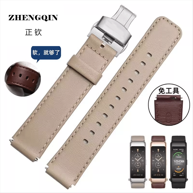 适用华为手环B7运动旗舰版苍穹灰真皮手表带智能b6/b3商务摩卡棕