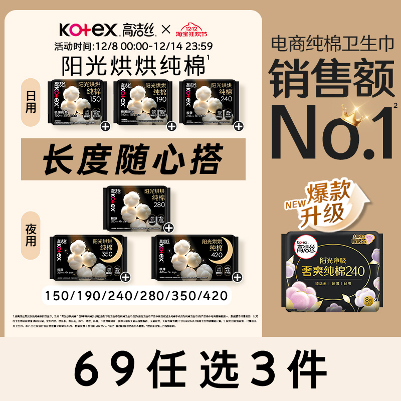 【赠品七选一】高洁丝海岛棉日夜用卫生巾组合姨妈巾官旗防漏透气