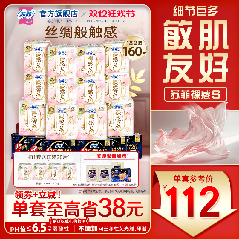 sofy/苏菲裸感S卫生巾敏感肌超薄日用超熟睡夜用姨妈巾正品