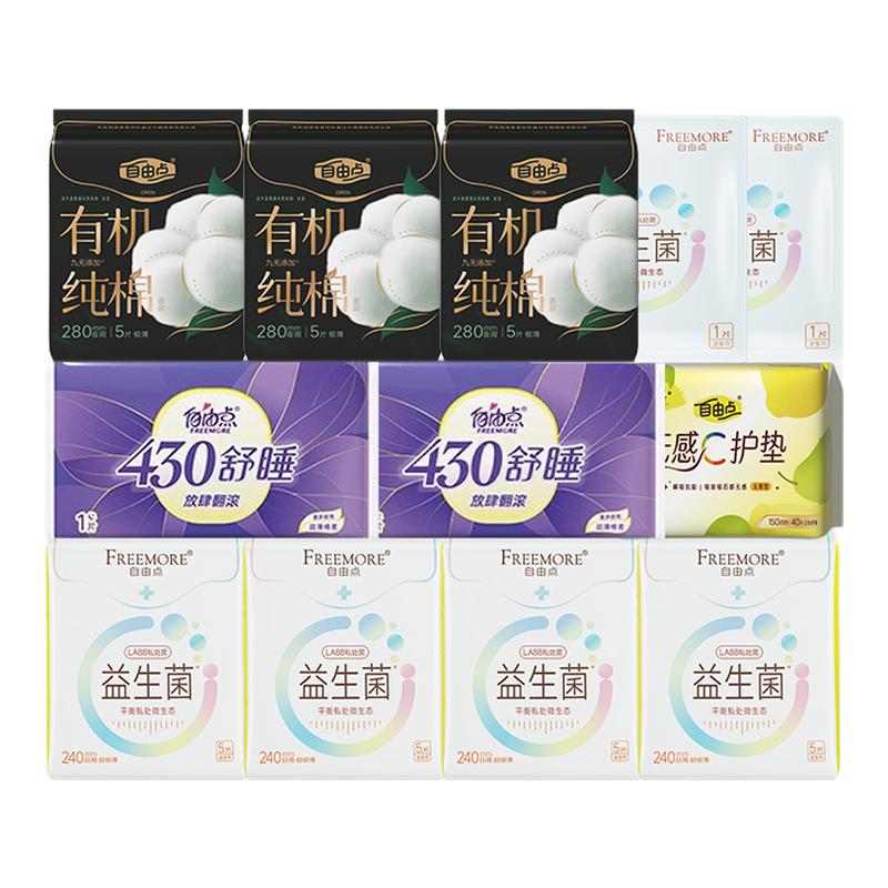 自由点益生菌有机纯棉表层日夜用卫生巾组合装轻薄透气正品姨妈巾