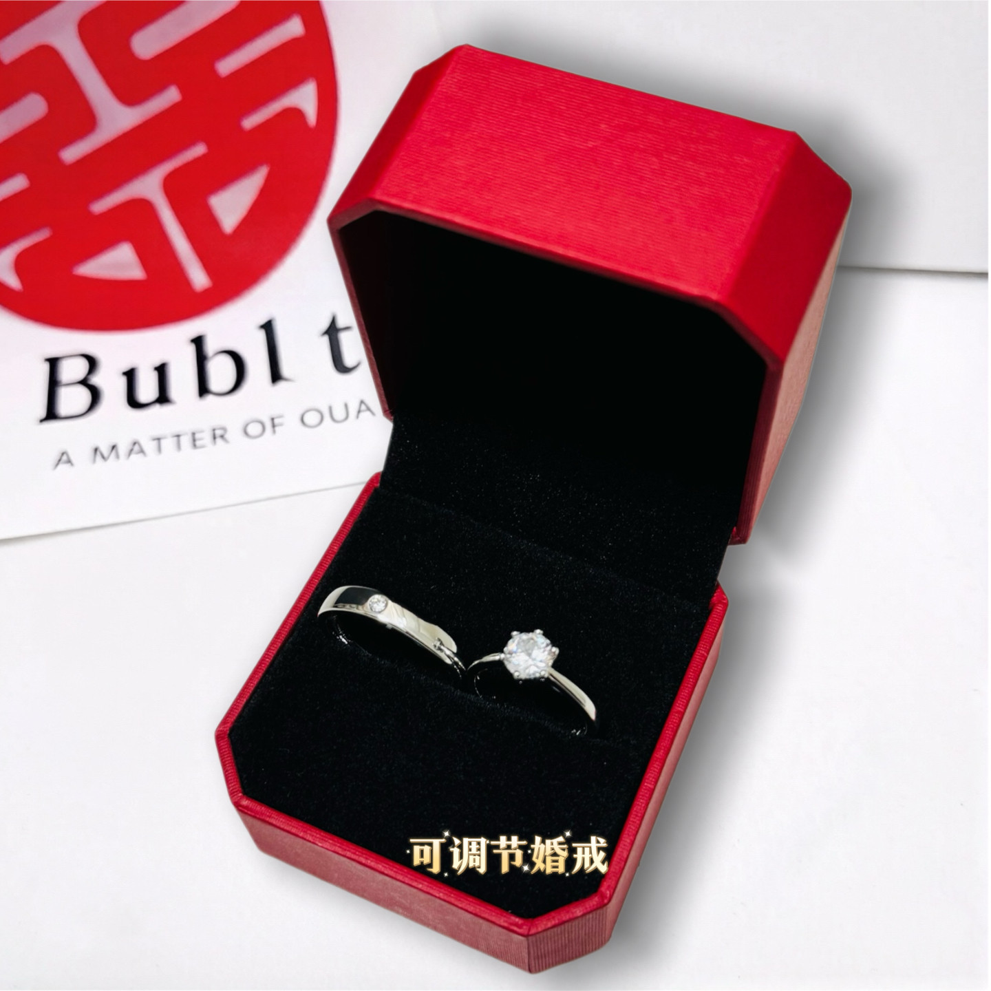 一克拉仿真钻戒情侣戒指四爪女戒活口可调节结婚对戒婚礼仪式道具