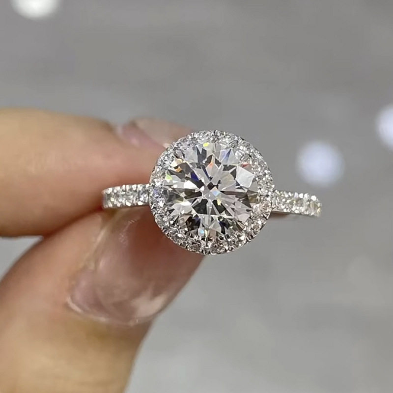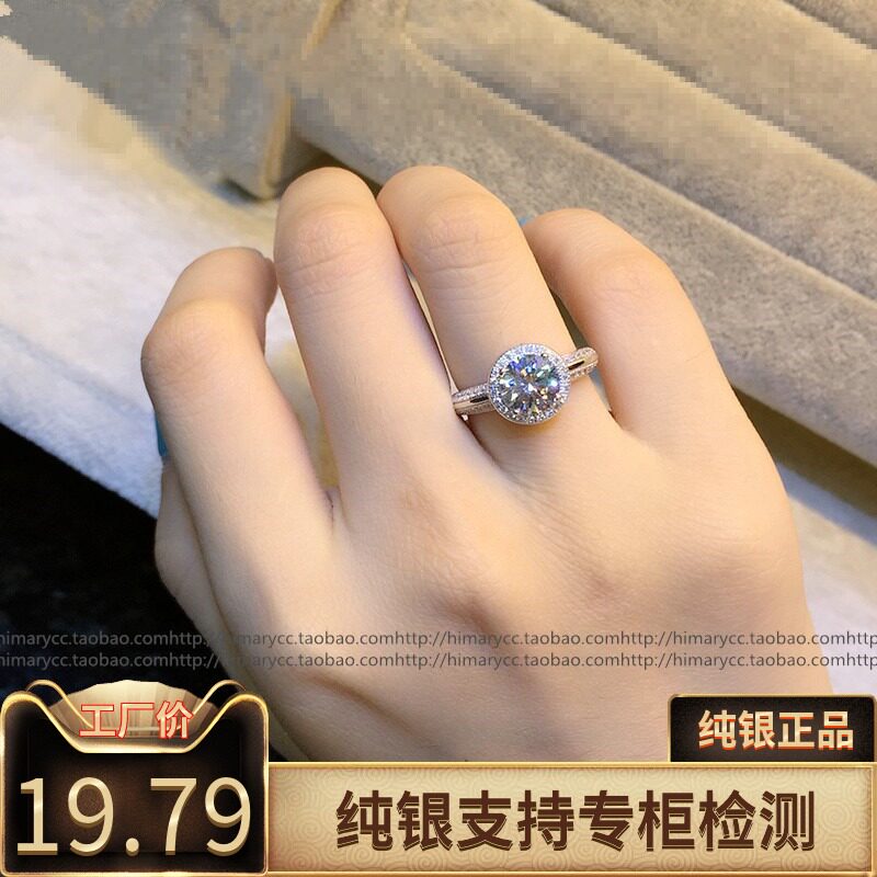 初沫伊正品D色莫桑石戒指纯银一克拉钻戒结婚仿真婚戒求婚送女友