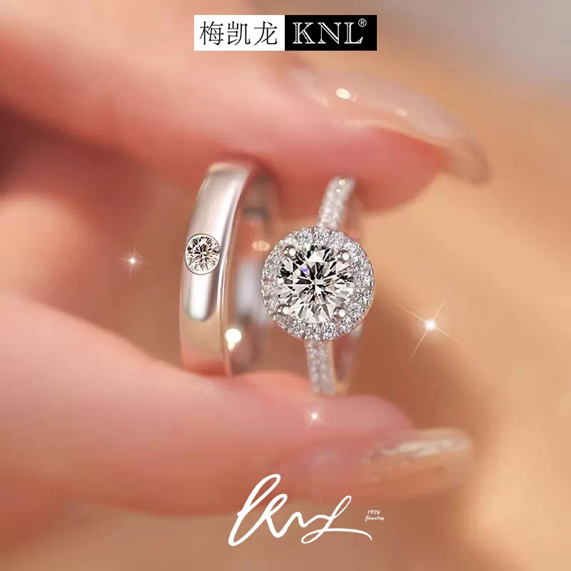 莫桑石钻戒一克拉钻石秘饰钻戒纯银情侣对戒铂金求婚仿真钻石戒指