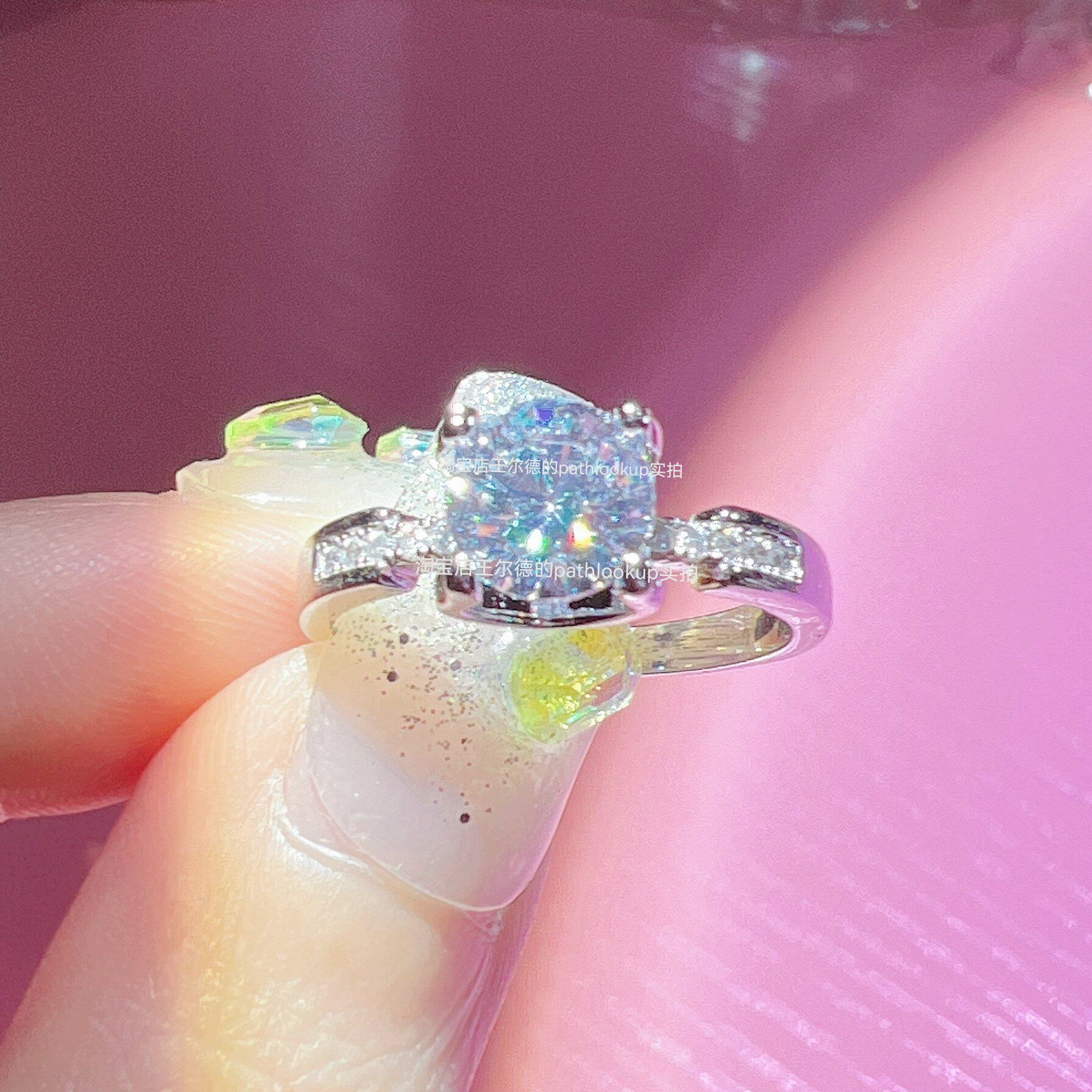 超仿真一克拉仿真钻戒女925纯银火彩求婚戒指不掉色指环日韩饰品