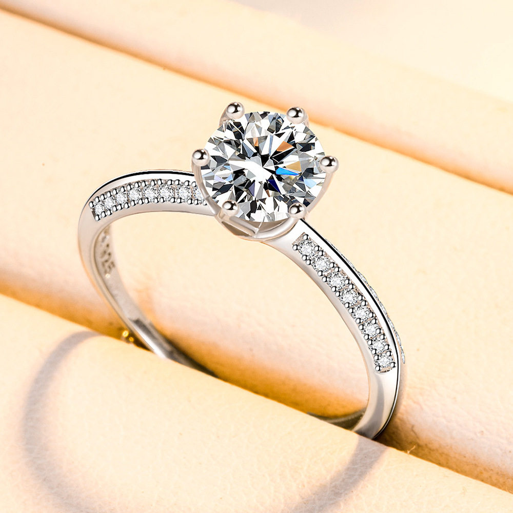 莫桑石钻戒女纯银镀铂金一克拉进口仿真钻石戒指结婚求婚钻戒婚戒