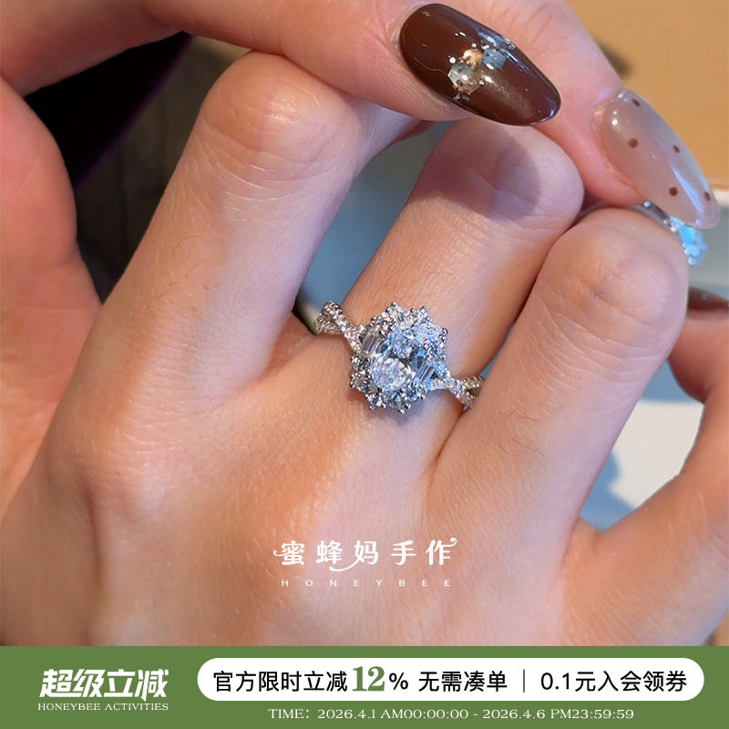 蜜蜂妈 玫瑰庄园一克拉仿真钻戒指女轻奢高级感爆闪精致食指指环