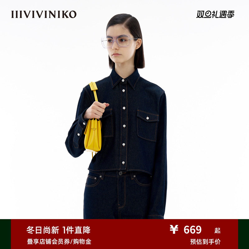 IIIVIVINIKO夏季新款复古帅气短款牛仔衬衫外套女M421402207D