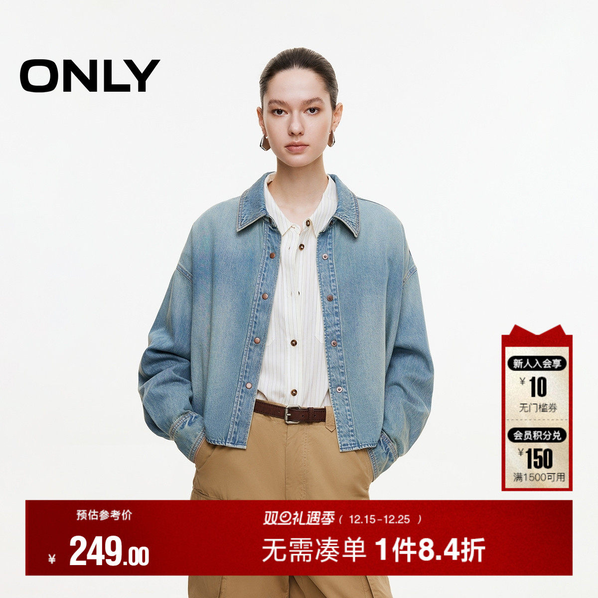 ONLY2025秋季新款宽松翻领落肩慵懒风设计短款长袖牛仔衬衫女