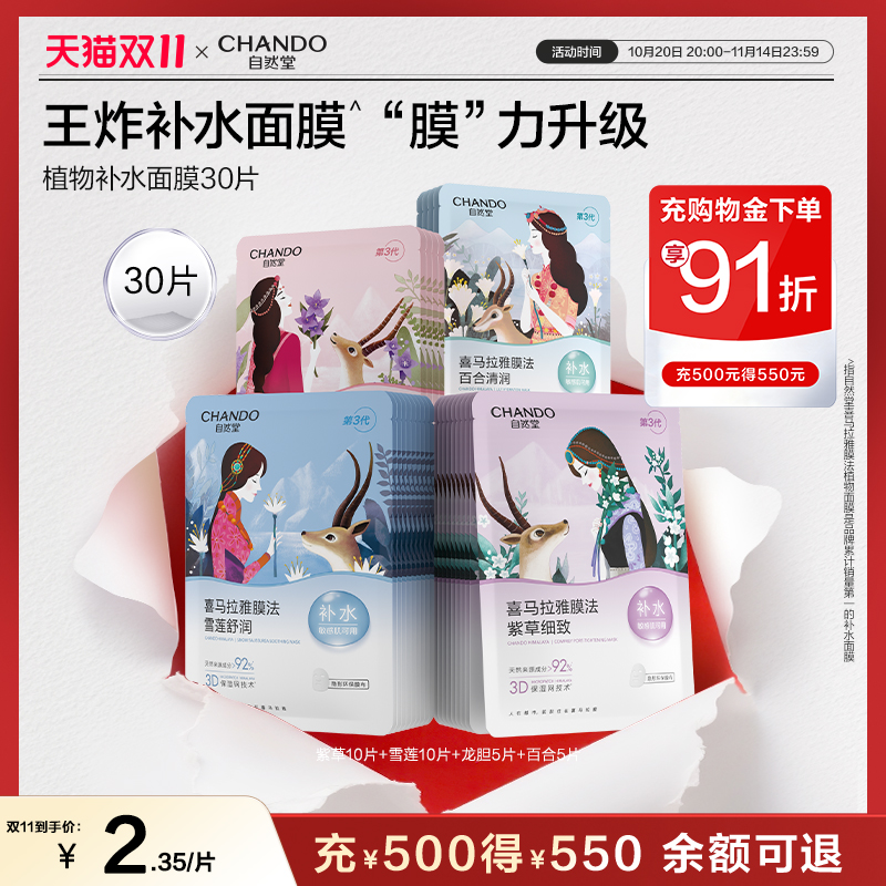 【下拉领补贴】自然堂喜马拉雅植物保湿面膜40片舒缓肌肤敏肌可用