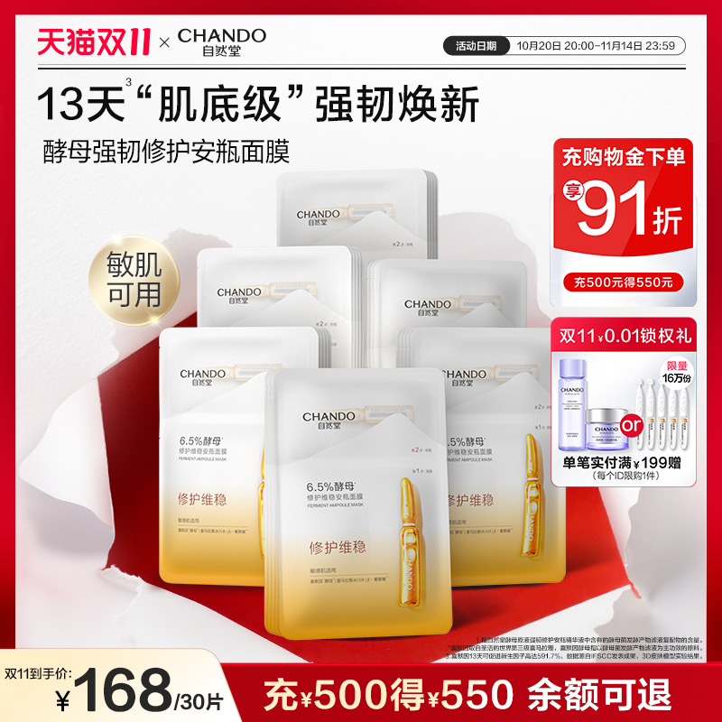 自然堂6.5%酵母修护维稳安瓶面膜10片敏感肌喜默因保湿强韧基底