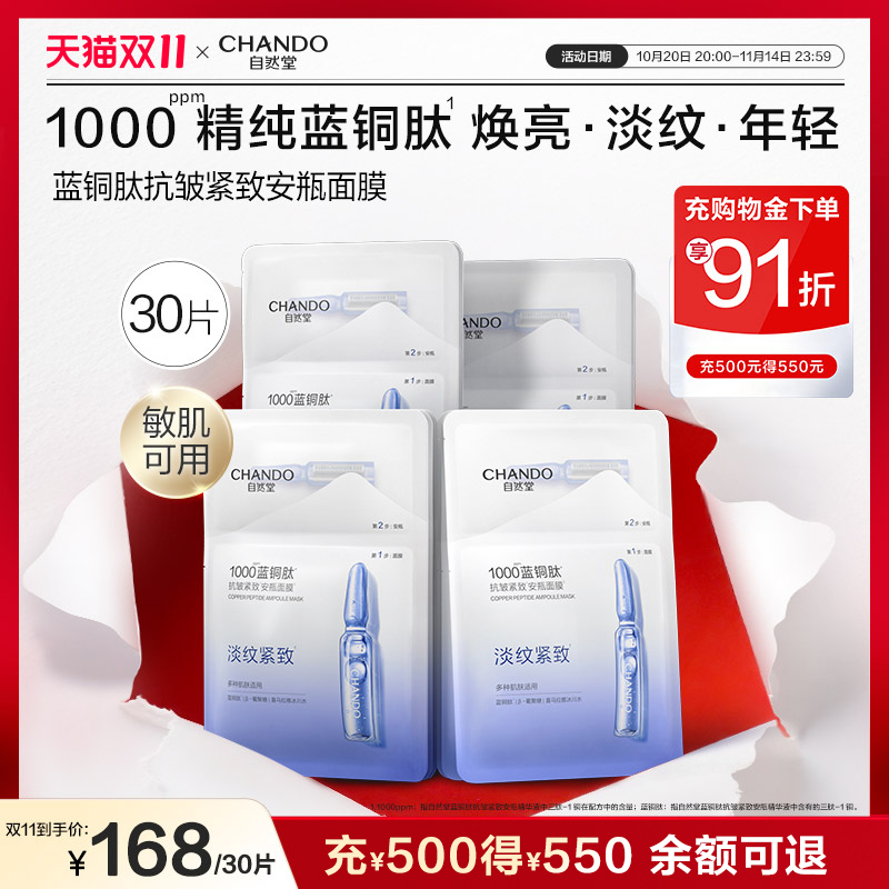 自然堂蓝铜肽抗皱紧致安瓶面膜10片保湿舒缓淡化皱纹敏感肌可用