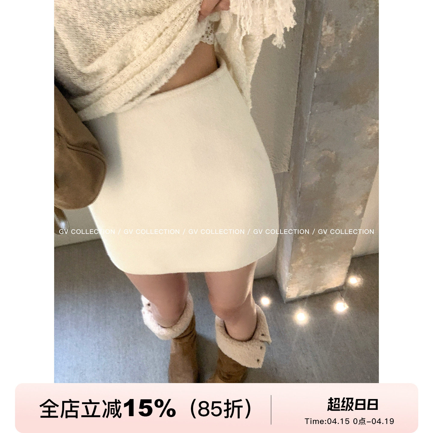 GV大白哥 简约周刊 毛呢直筒半身裙防走光百搭气质裙子女春季新款