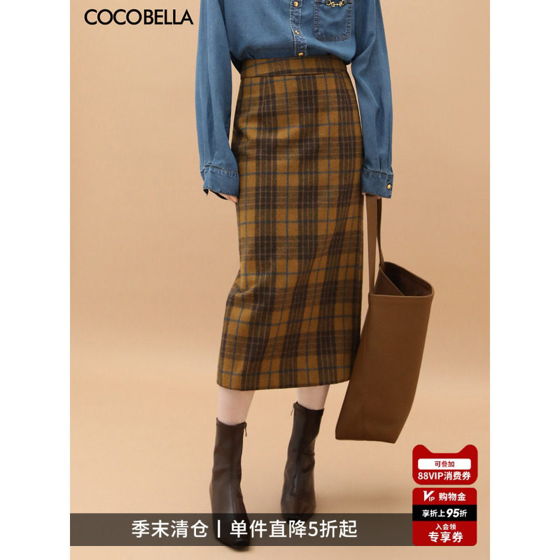 【折扣季】COCOBELLA美拉德复古格纹毛呢半身裙女高腰直筒裙HS923