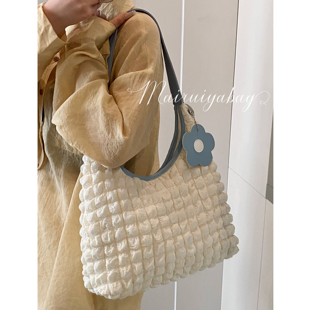 2025年新款夏洋气云朵泡芙花朵帆布单肩包背心包学生简约手提包