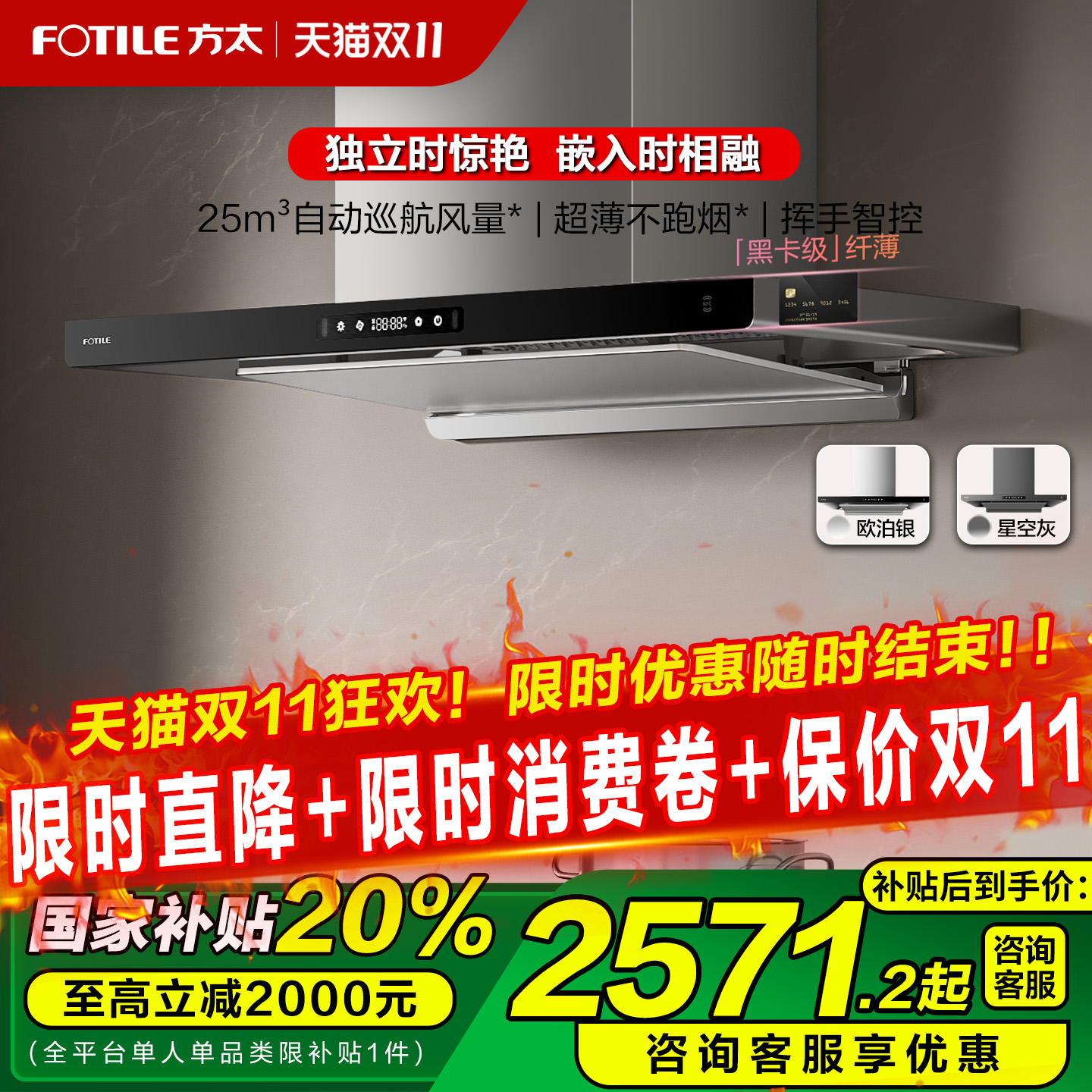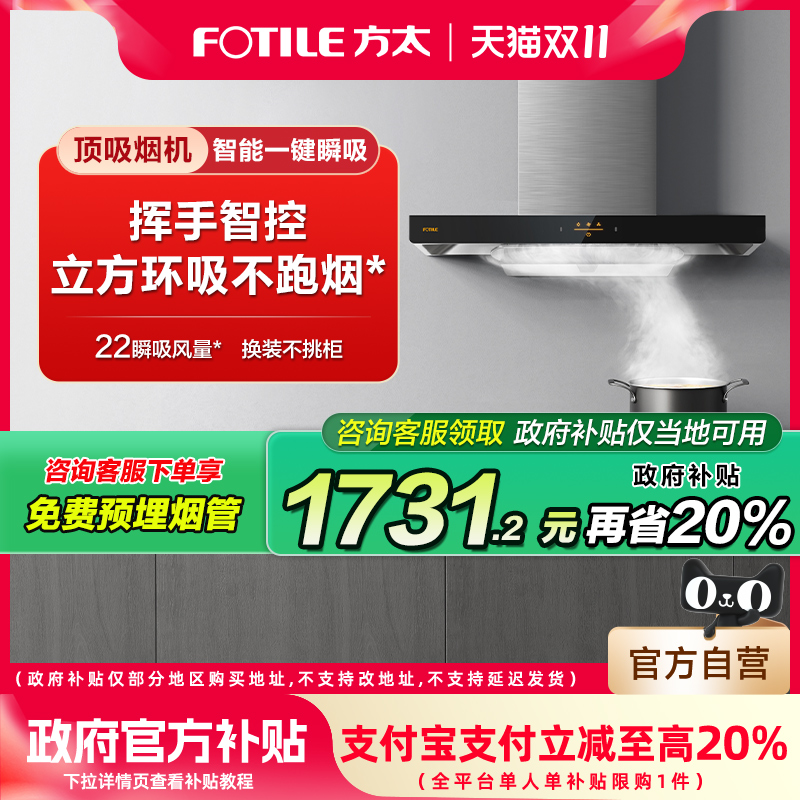 方太油烟机官方旗舰店V1S欧式顶侧一体厨房家用平嵌以旧换新补贴