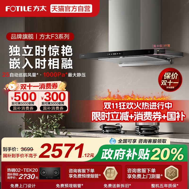【政府补贴】方太油烟机F3纤薄欧式家用厨房大吸力吸油机官方正品