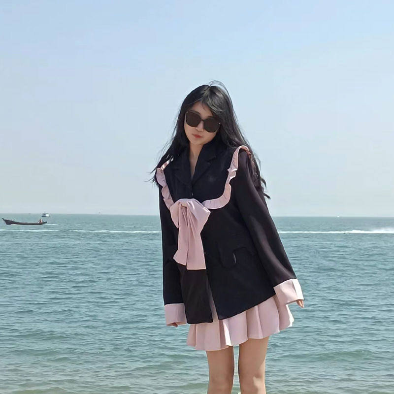2024新款秋款女装韩国气质时尚宽松休闲西装裙套装外套短裙两件套