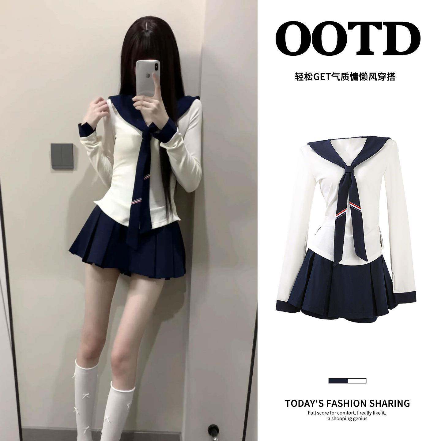 学院套装女秋款jk制服纯欲减龄衬衫修身收腰显瘦百褶裙两件套衬衣