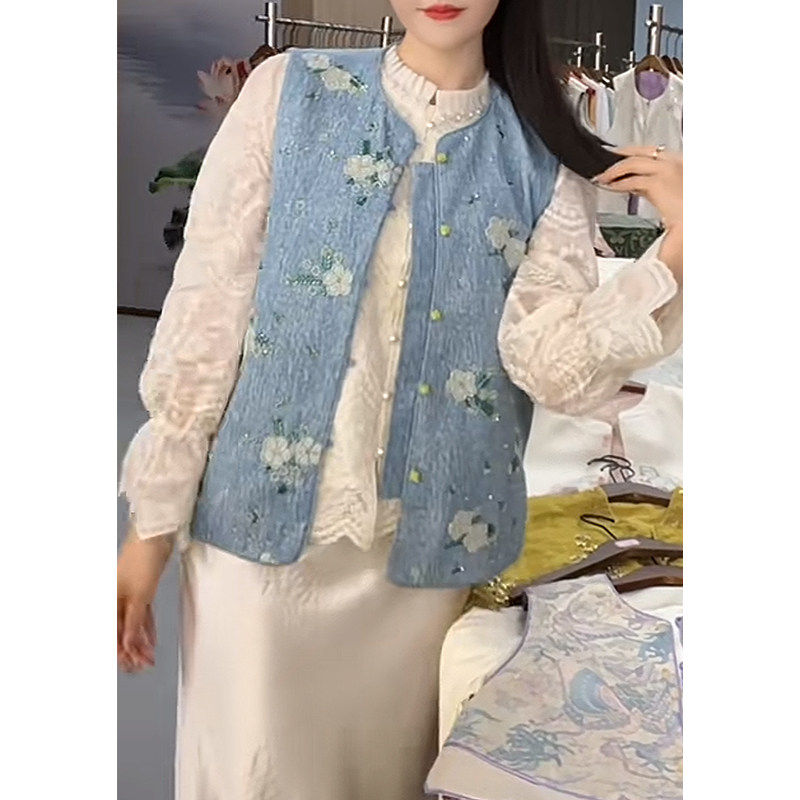 钉珠刺绣牛仔马甲短裙套装女2025春秋款新中式显瘦国风复古两件套