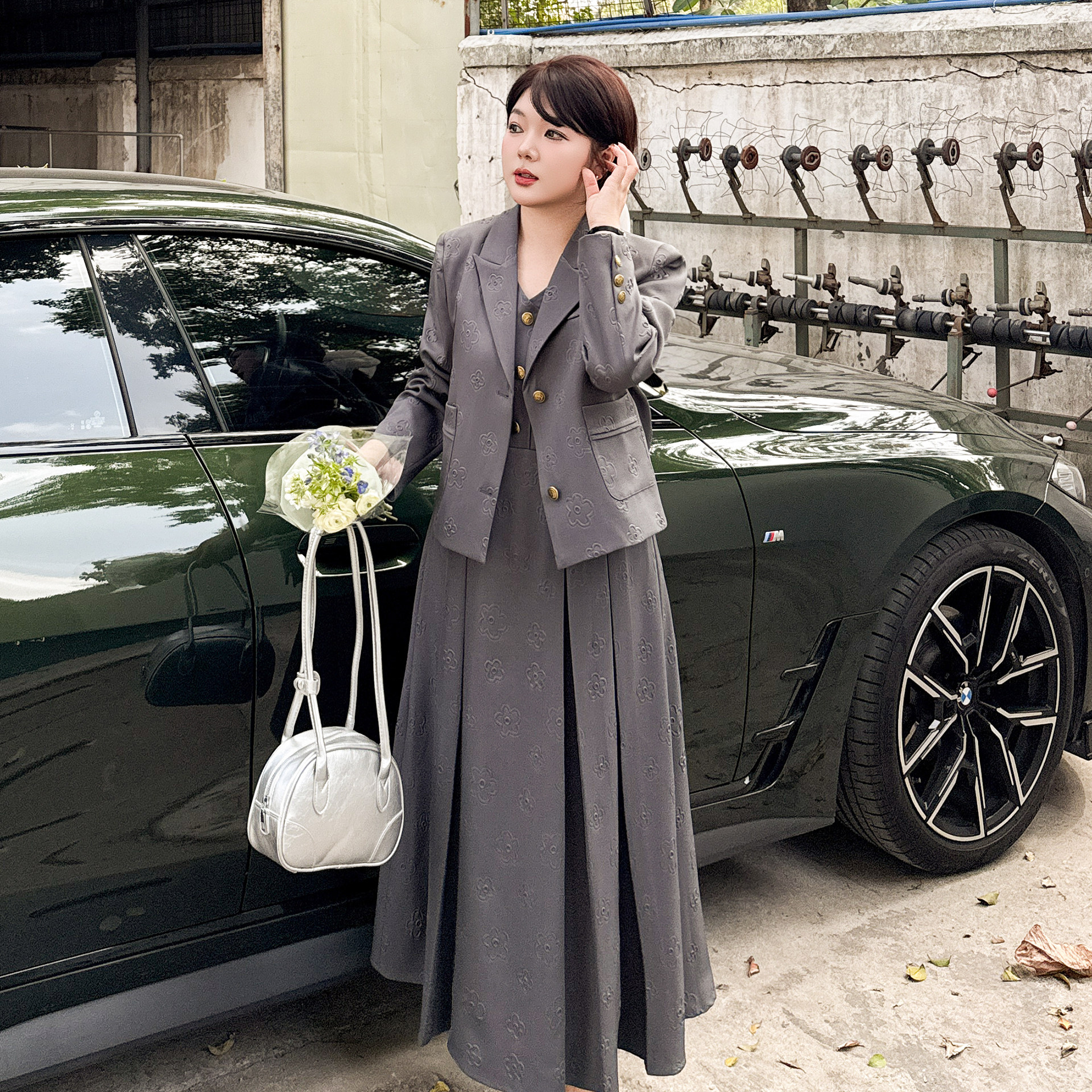 穿搭小香风高级感灰色通勤半裙两件套装女装2025年新款超好看秋款