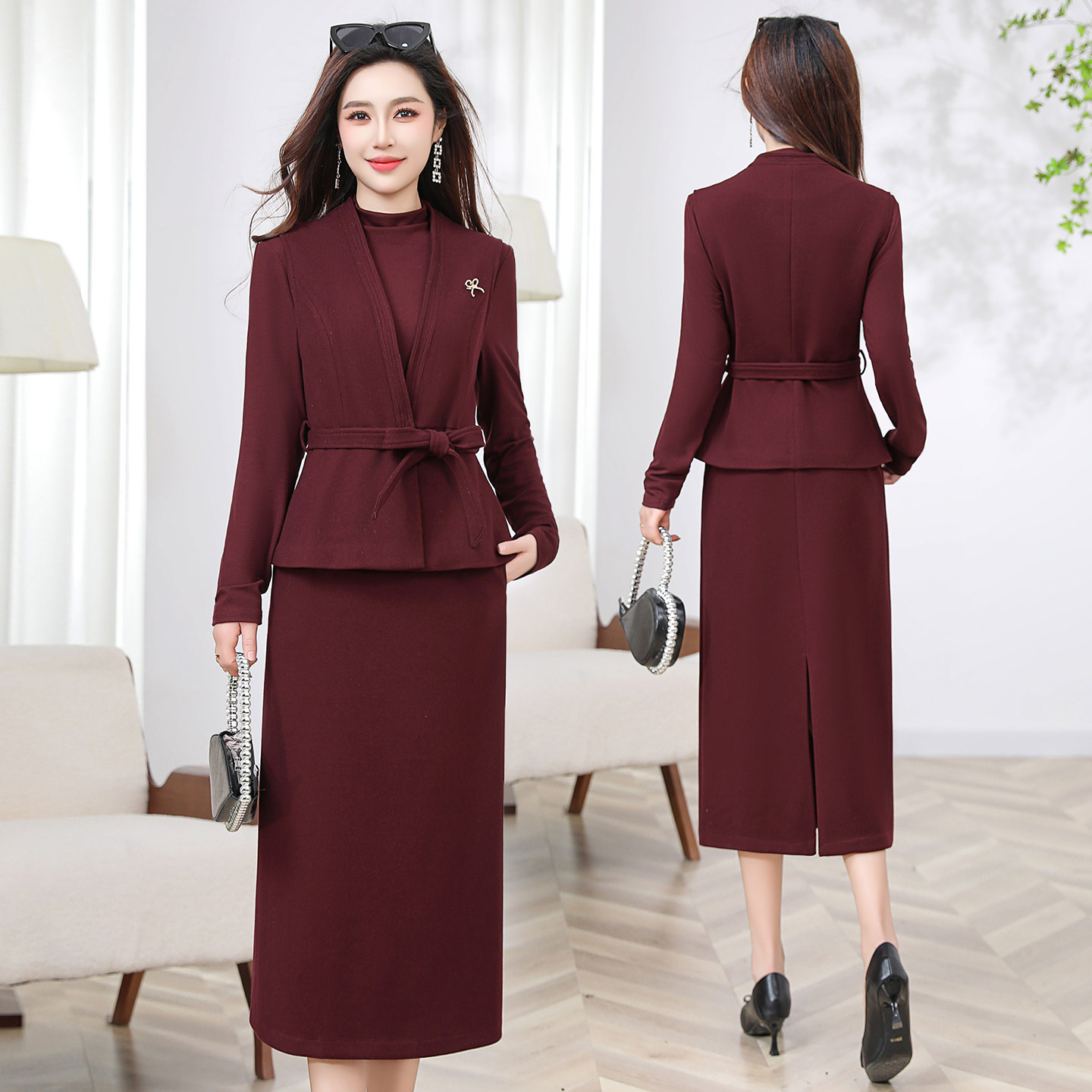 - 女秋冬两件套裙装