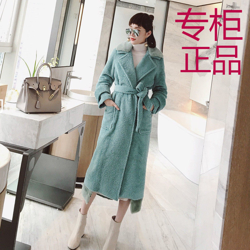 清仓特价款羊绒大衣女薄荷绿羊驼绒风衣长款水貂毛领毛呢大衣外套