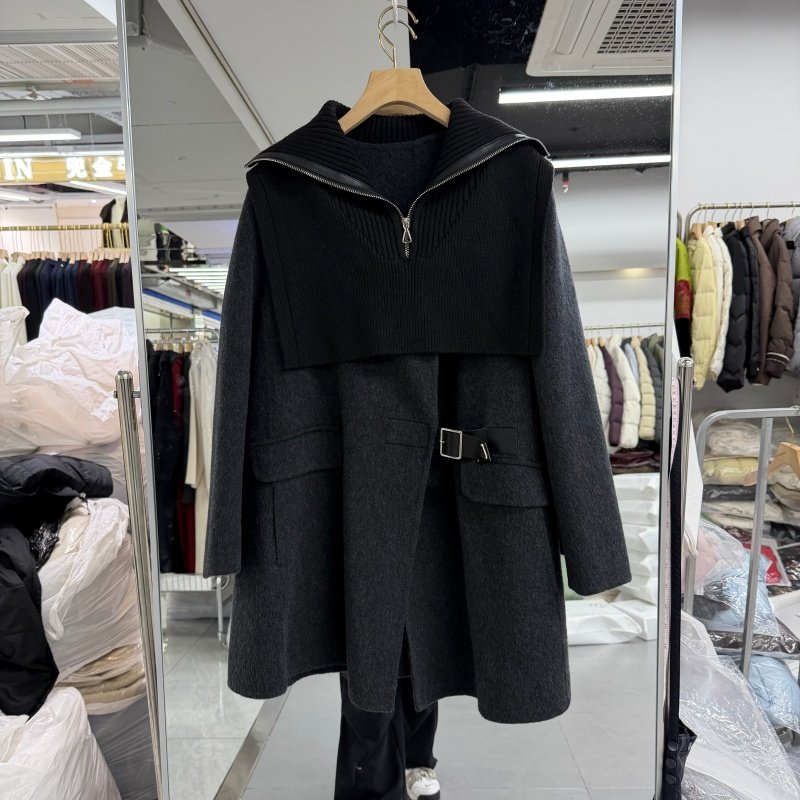 清仓特价女装双面羊绒大衣外套2025年冬装新款配围脖拼肩两件套潮