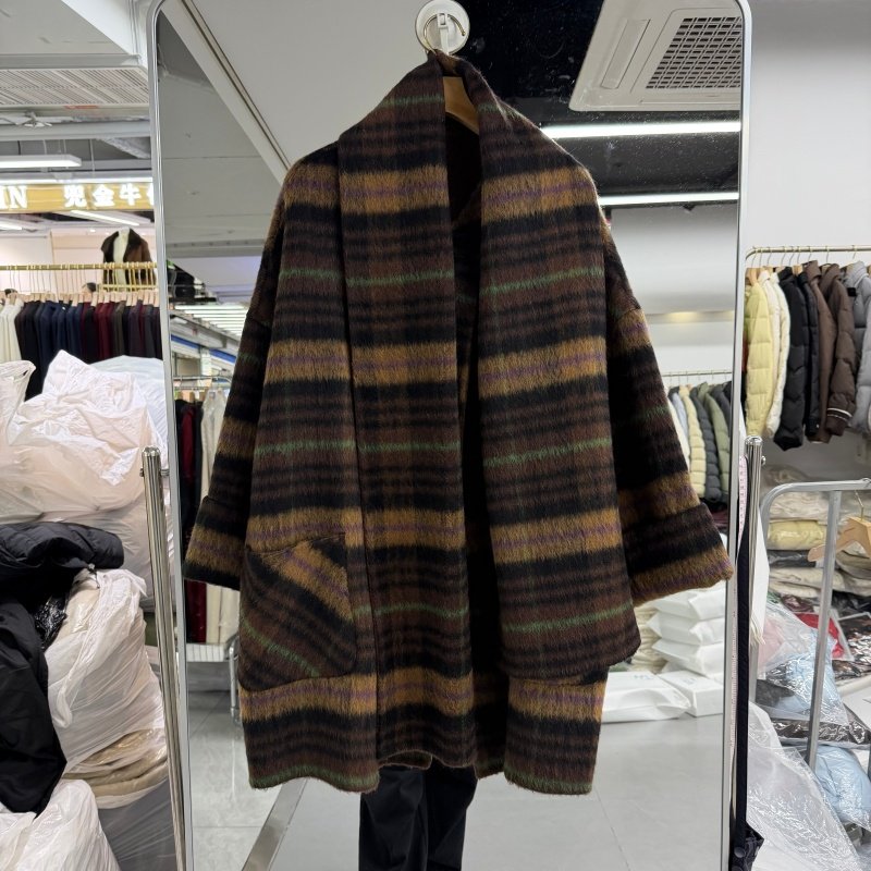 特价处理女装双面羊绒大衣外套2025年冬装新款格子图案配围脖清仓