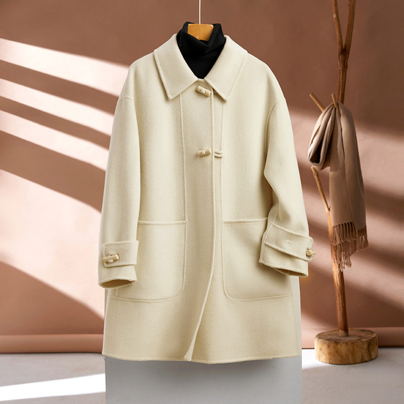 特价清仓~专柜品质新中式盘扣双面羊绒大衣女秋冬季羊毛毛呢外套