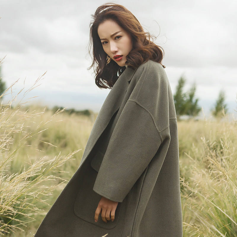 反季清仓特价2025年春季双面手缝羊绒大衣羊毛外套女韩国宽松气质