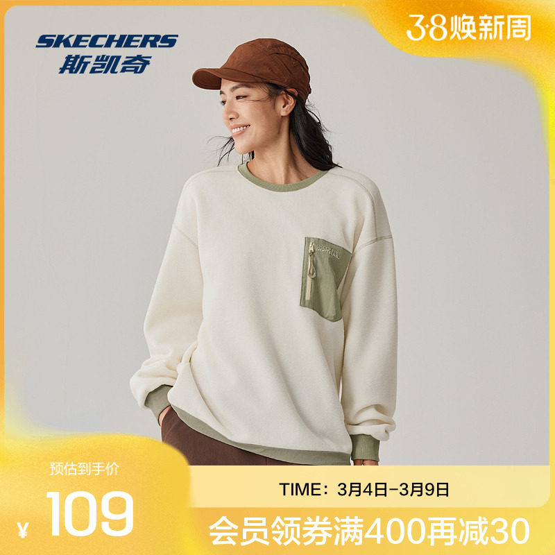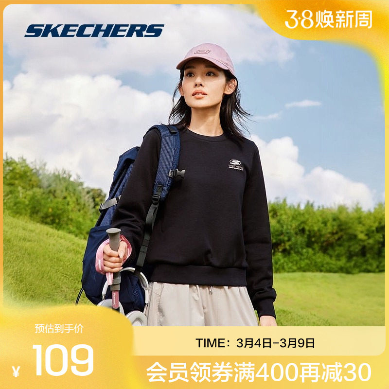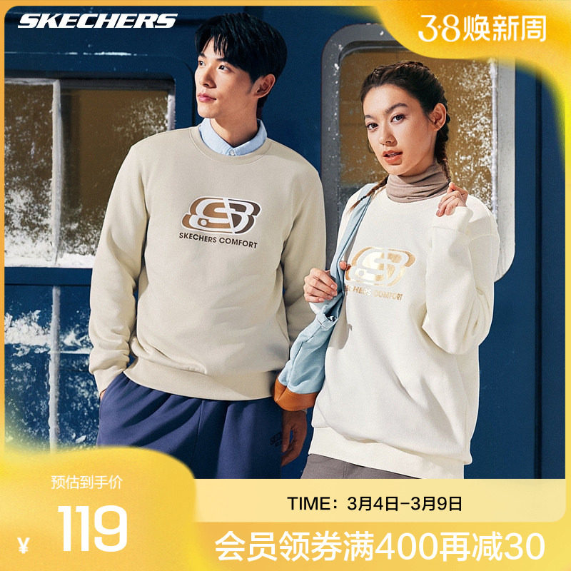 斯凯奇运动长袖男女款情侣款打底衫简约蓄热保暖加厚宽松加绒卫衣