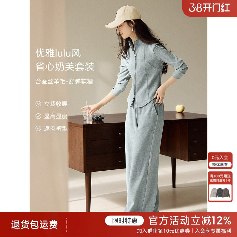 XWI欣未LULU风含蚕丝羊毛连帽卫衣套装女春季运动减龄穿搭一整套