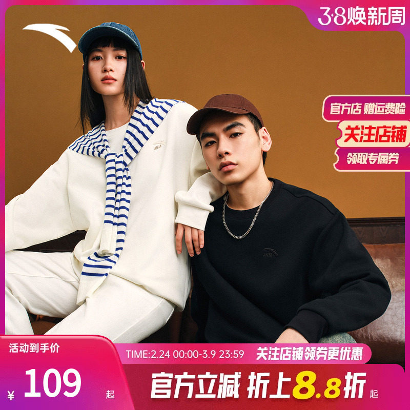 【王一博同款】安踏情侣套头卫衣男女同款长袖运动上衣172518713