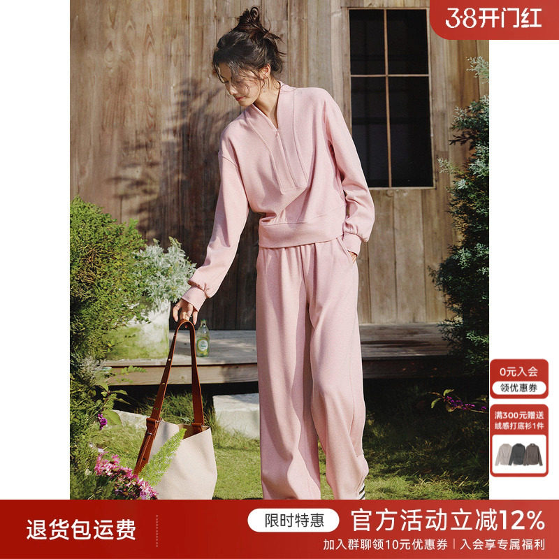 [会员8折]XWI欣未LULU风含蚕丝羊毛运动卫衣套装女春季穿搭一整套