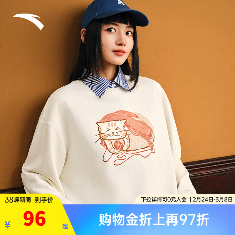 安踏喵喵卫衣女2026春季新款休闲长袖圆领套头衫宽松百搭运动上衣