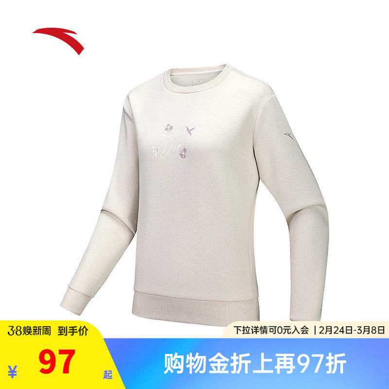 安踏易打理卫衣丨运动卫衣女春季新款简约圆领套头上衣162517718S