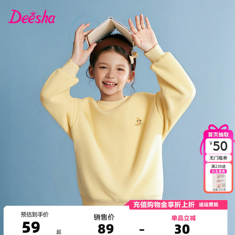 笛莎童装女童加绒卫衣冬季新款儿童女孩中大童圆领上衣韩版运动服