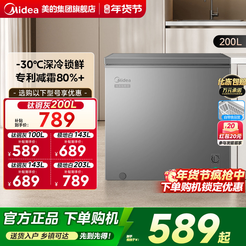 美的100/143/200L冰柜家用小型冷柜冷冻冷藏一级母乳冰箱官方旗舰