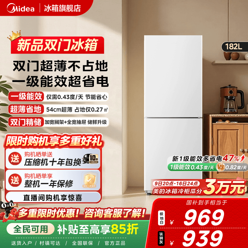 美的冰箱华凌家用三门一级风冷双两门双变频宿舍小型四门以旧换新