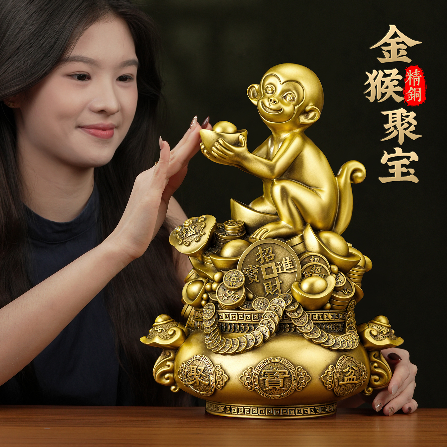 黄铜十二生肖猴摆件招财猴元宝猴补角客厅工艺品摆件商务礼品装饰
