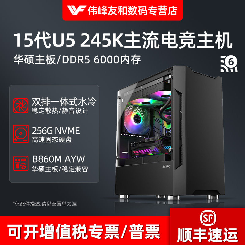 15代U5 245K 225 14600K高配华硕主板黑神话悟空AI电竞游戏组装主机直播多开水冷无显卡家用台式电脑支持4060