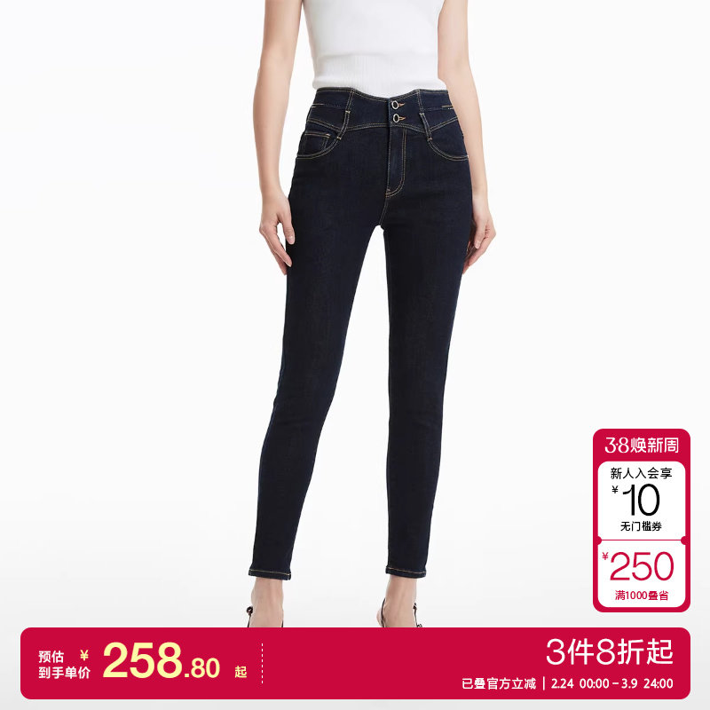 - 牛仔裤加绒修身女