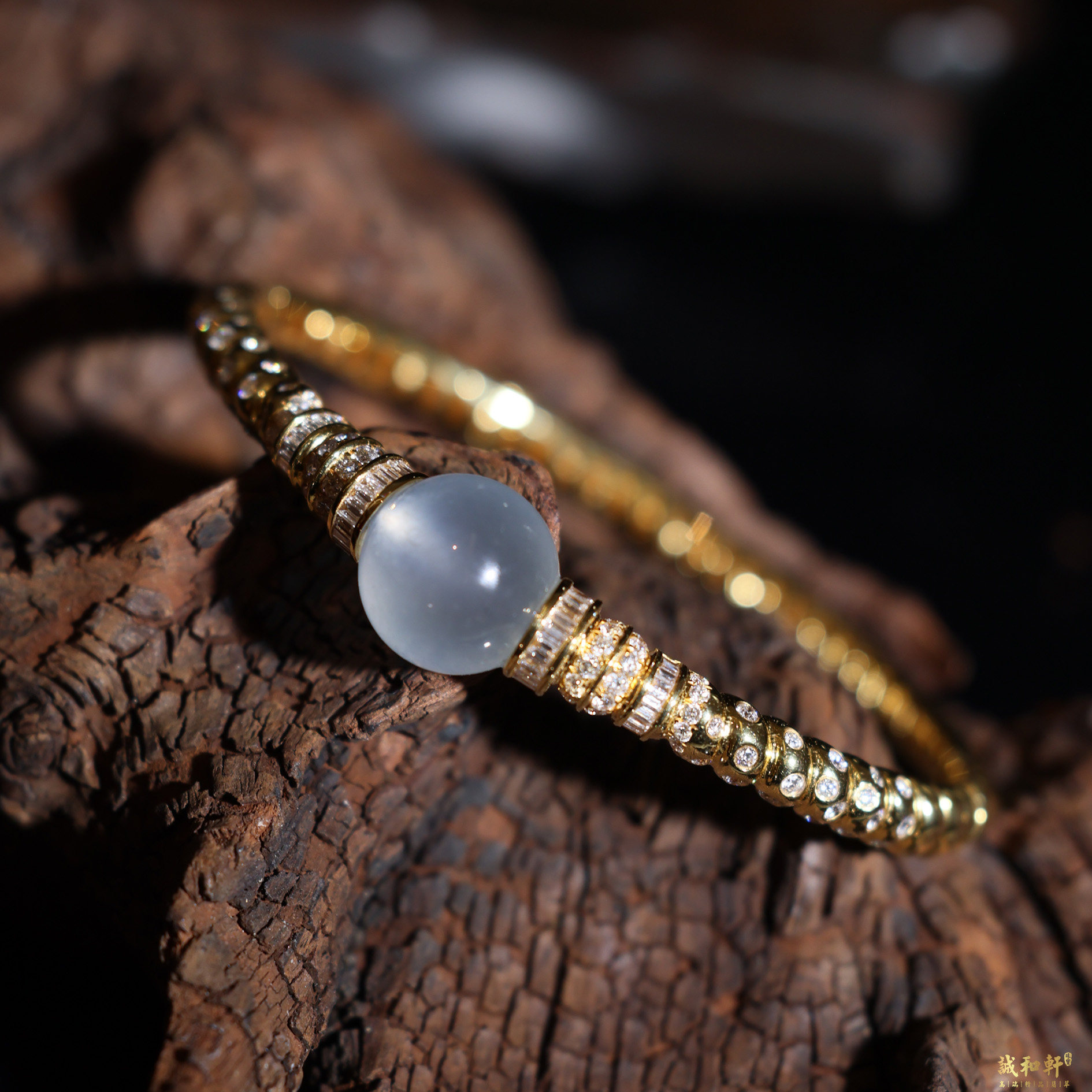仟喜梵"清梦荷韵"玻璃种翡翠平替石英岩玉手镯子女款正品贵妃处理
