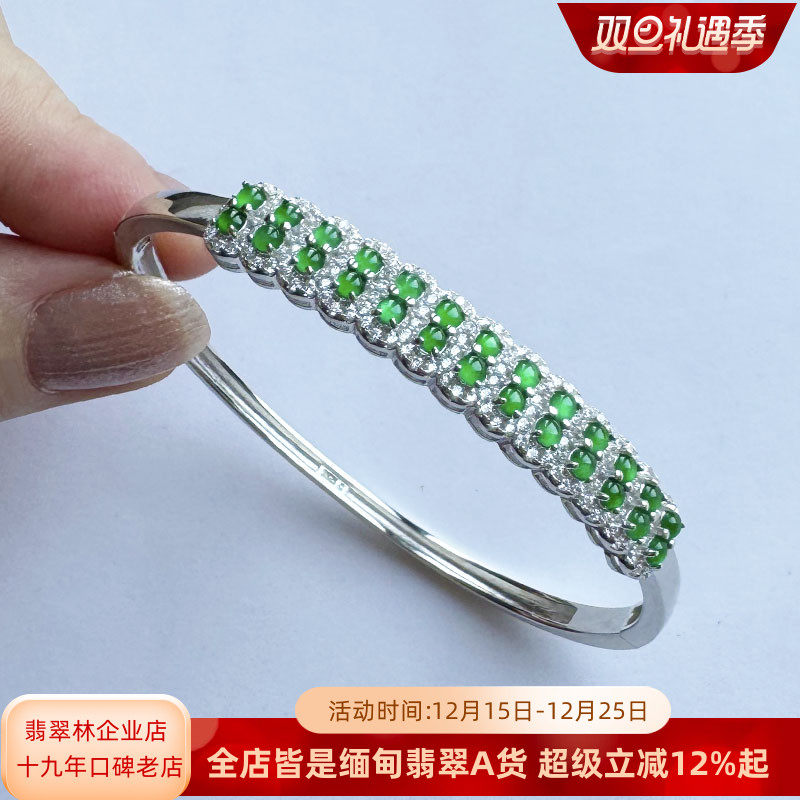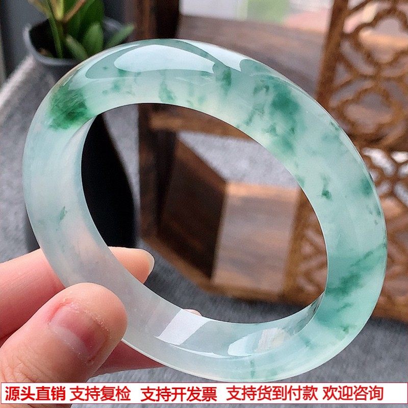 缅甸翡翠冰种玻璃种帝王绿阳绿A货老坑精品直播定制加工飘花手镯
