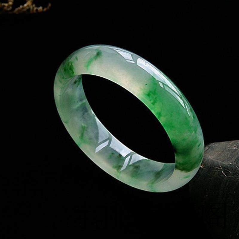 缅甸冰种飘花翡翠手镯圆条正圈老坑晴水绿花玻璃种翡翠处理玉镯子